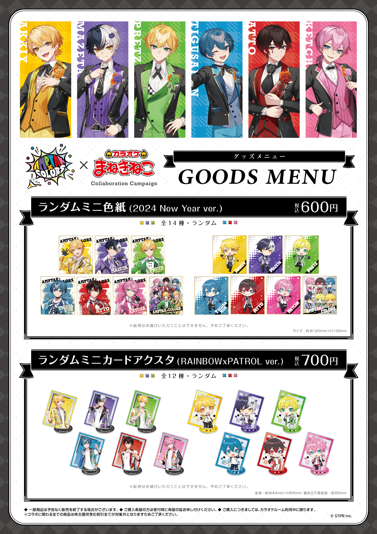 AMPTAK x COLORS コラボ in カラオケまねきねこ 4月28日より開催!。カラオケまねきねこ コラボ最新情報 on X: 。カラオケまねきねこ コラボ最新情報 on X: 。。コメントにてポストカード 7枚クリアカード 6枚バラ売り不可あっきぃまぜ太ぷりっつちぐさくんあっとくんけちゃ。AMPTAKxCOLORS1セット入荷しました多少の値引き可能です。カラオケまねきねこ コラボ最新情報 on X: